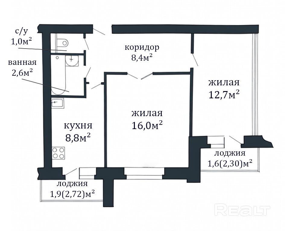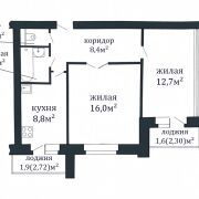 · Комнаты: 2 изолированные (16,0 м2 и 12,7 м2)