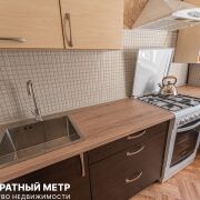 Кухонный гарнитур со всей необходимой бытовой техникой (холодильник, газовая плита с духовкой) позволит осуществить любые кулинарные фантазии и собрать компанию друзей за обеденным столом.
