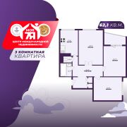 - Изолированные комнаты: все три комнаты обеспечивают приватность и комфорт, позволяя каждому наслаждаться личным пространством. Это особенно важно для семей с детьми, где каждому нужно свое место для отдыха и учебы. Общая площадь квартиры составляет 62,1 м2, жилая - 39,6 м2, просторная кухня - 8,1 м2.