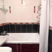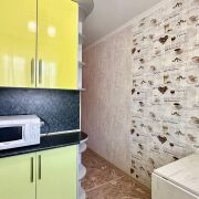 - Кухня площадью 6,1 м2 — аккуратная, функциональная, с кухонным гарнитуром и бытовой техникой. Санузел раздельный, облицован плиткой.