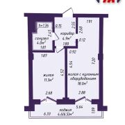 - 2-комнатная квартира, 4-й этаж 25-этажного дома современной постройки, общая площадь 42,8 м2, жилая площадь 29,3 м2. При покупке квартиры у застройщика площадь по СНБ 46,4 м2.