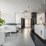 -Входная группа оформлена с элегантностью: просторный вестибюль с мраморной отделкой, профессиональная охрана 24/7 (видеонаблюдение, контроль входа), лифты — скоростные, современные, обслуживаются регулярно. Коридоры содержатся в идеальной чистоте.