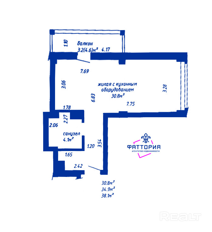 30.8 м²