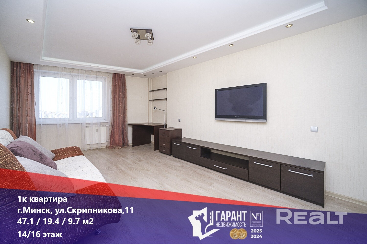 Продается просторная (жилая – 19.4м2) однокомнатная квартира с десятиметровой кухней в доме 2007 года постройки ул.Скрипникова, д.11. Высокий, четырнадцатый, этаж