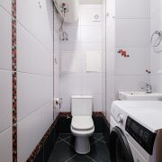 В санузле установлен бойлер и стиральная машина.