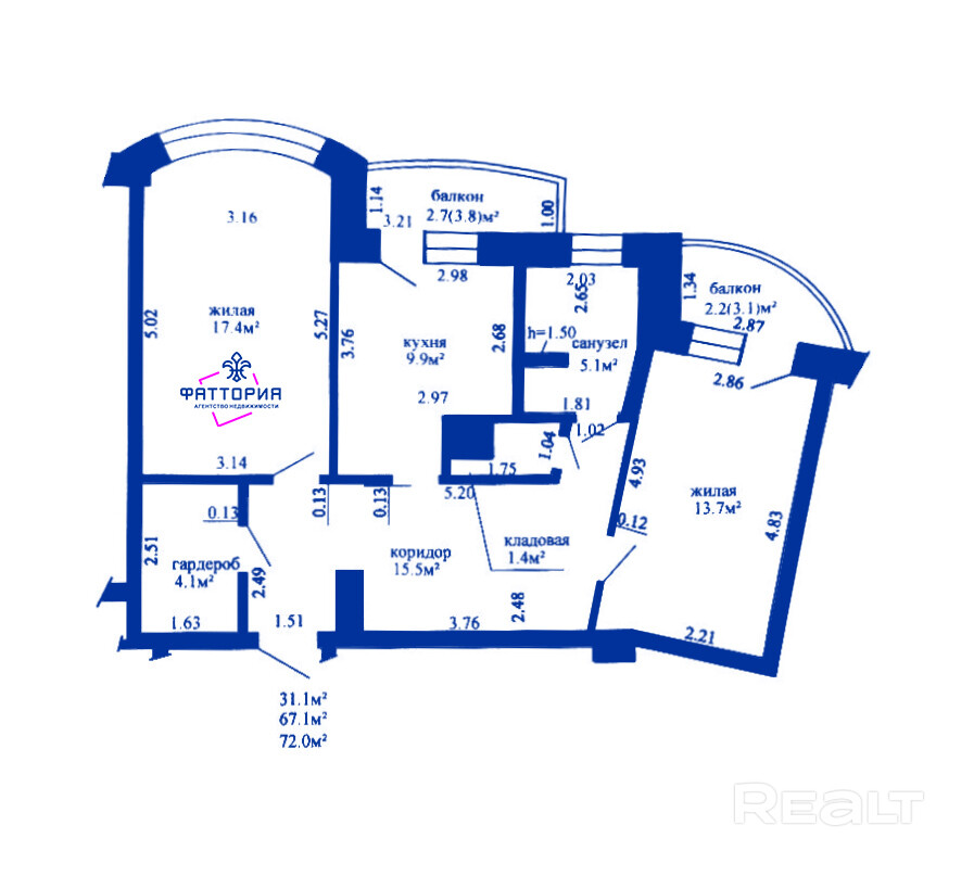 31.1 м²