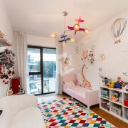 Из родительской спальни – выход на просторный застеклённый балкон. На балконе имеется кладовая, очень практично и полезно для хранения вещей.