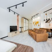 Современный дом 2017 года постройки расположен в спокойной части района с преимущественно малоэтажной застройкой, вдали от шумных транспортных артерий, рядом с комплексом “Левада” и живописной набережной реки Свислочь. До ул. Орловской 700м (ост. РНПЦ Мать и дитя). До ост. трамвая 600 м (ост. Озеро). До Комсомольского озера 800м, есть чистый пляж, детские площадки, парк, беседки и кафе).