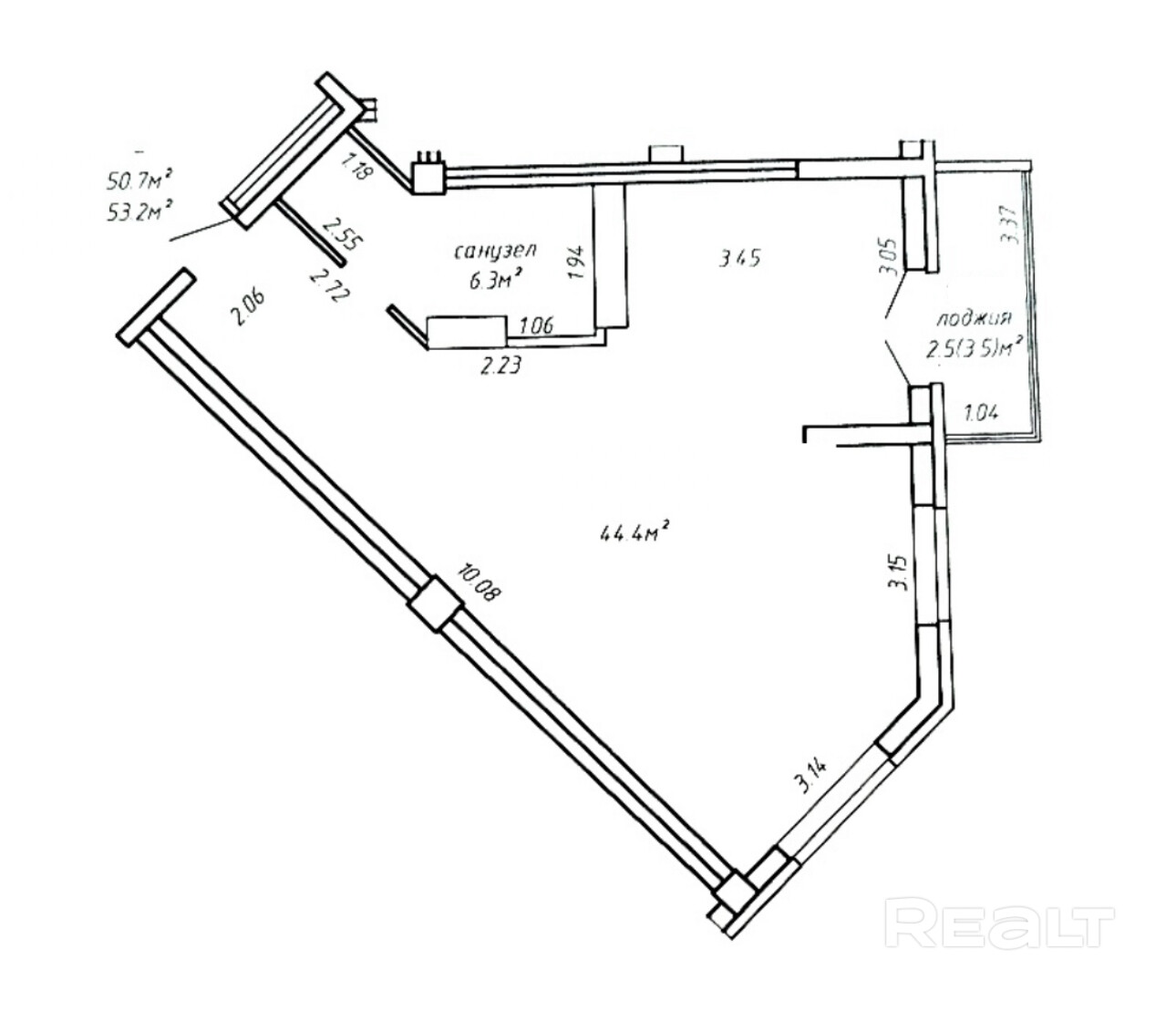 Площадь по СНБ 53,2 м2