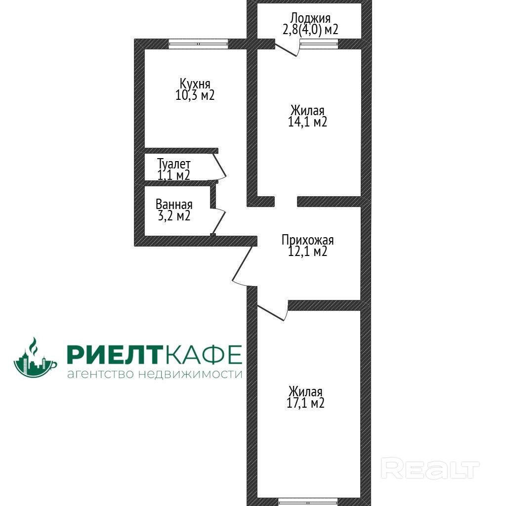 Эргономичная полноценная двухкомнатная квартира  (площадь по СНБ 60.7 кв.м ) с просторной кухней  10,3 кв.м.