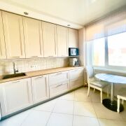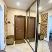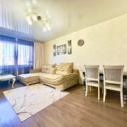 Планировка квартиры соответствует техническим характеристикам документов. На полах в жилых комнатах уложен ламинат, в прихожей плитка/ламинат, в кухне и санузлах плитка. Все стены в квартире выровнены и оклеены. В квартире для вашего удобства имеются 2 санузла. 2 лоджии расположенные по разные стороны квартиры утеплены, в них сделан ремонт и установлены рамы ПВХ. В прихожей установлен вместительный встроенный шкаф, также для хранения вещей одну комнату переоборудовали в гардеробную с большим встроенным шкафом, также в этой комнате установлен кондиционер. Кухня совмещенная с гостиной, в ней установлен угловой, новый кухонный гарнитур с встроенной техникой (духовой шкаф, варочная панель, вытяжка, посудомоечная машина).