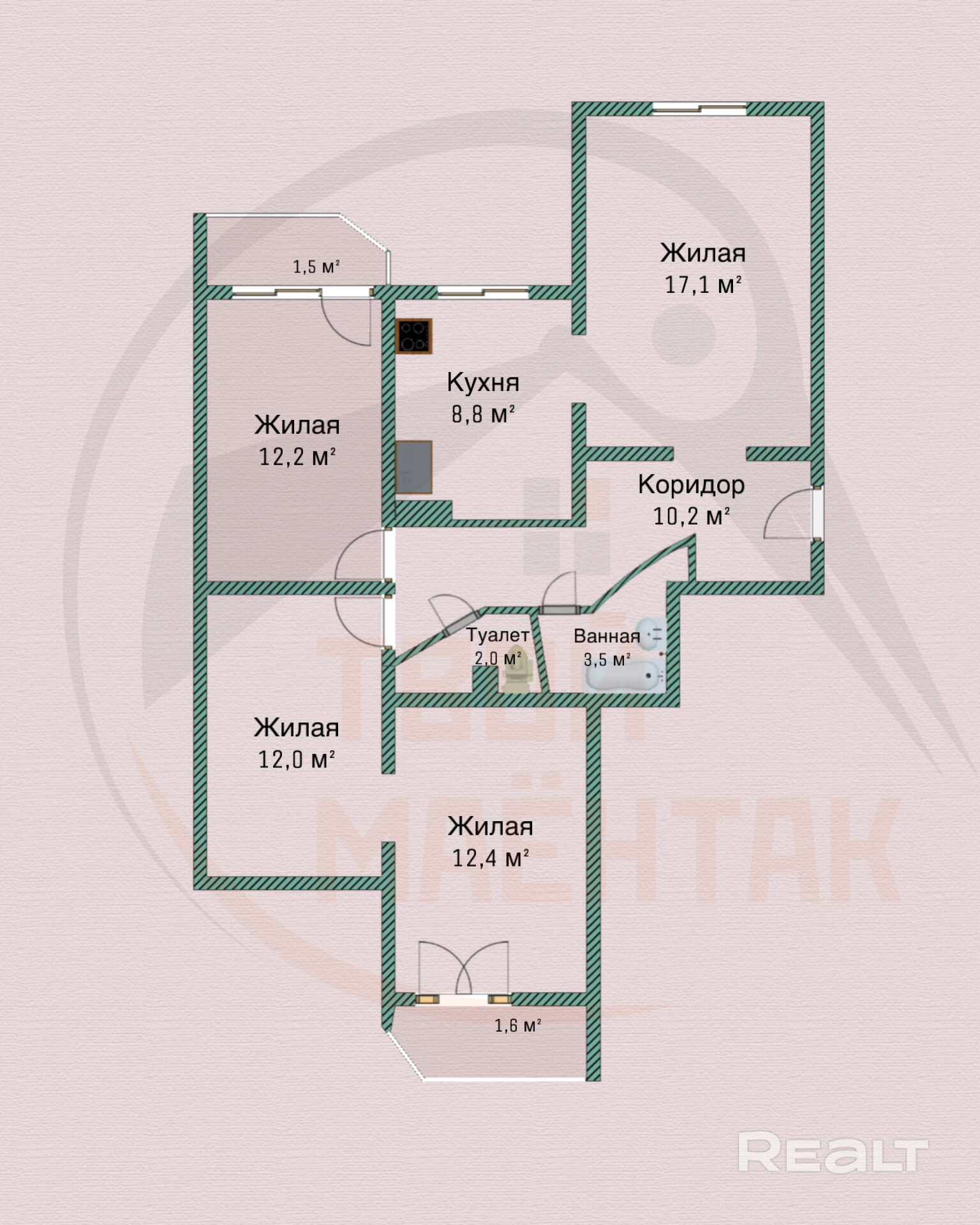 Купить 4-комнатную квартиру, г. Борисов, ул. Гагарина, 70