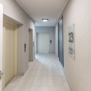 На первом этаже: дизайнерское лобби, консьерж, зона отдыха, туалет с пеленальным столиком, место для мытья лап домашних питомцев, колясочная.