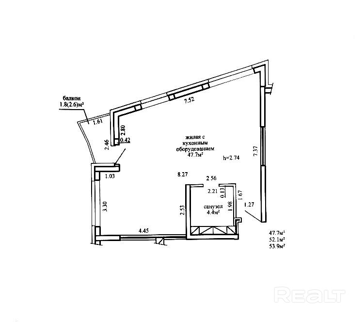 53.9 м²