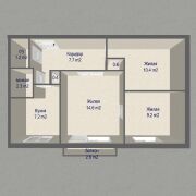 общая площадь — 53,6 кв. м., жилая — 34,8 кв. м, кухня — 7,2 кв. м.(по СНБ — 54,4 кв. м.).