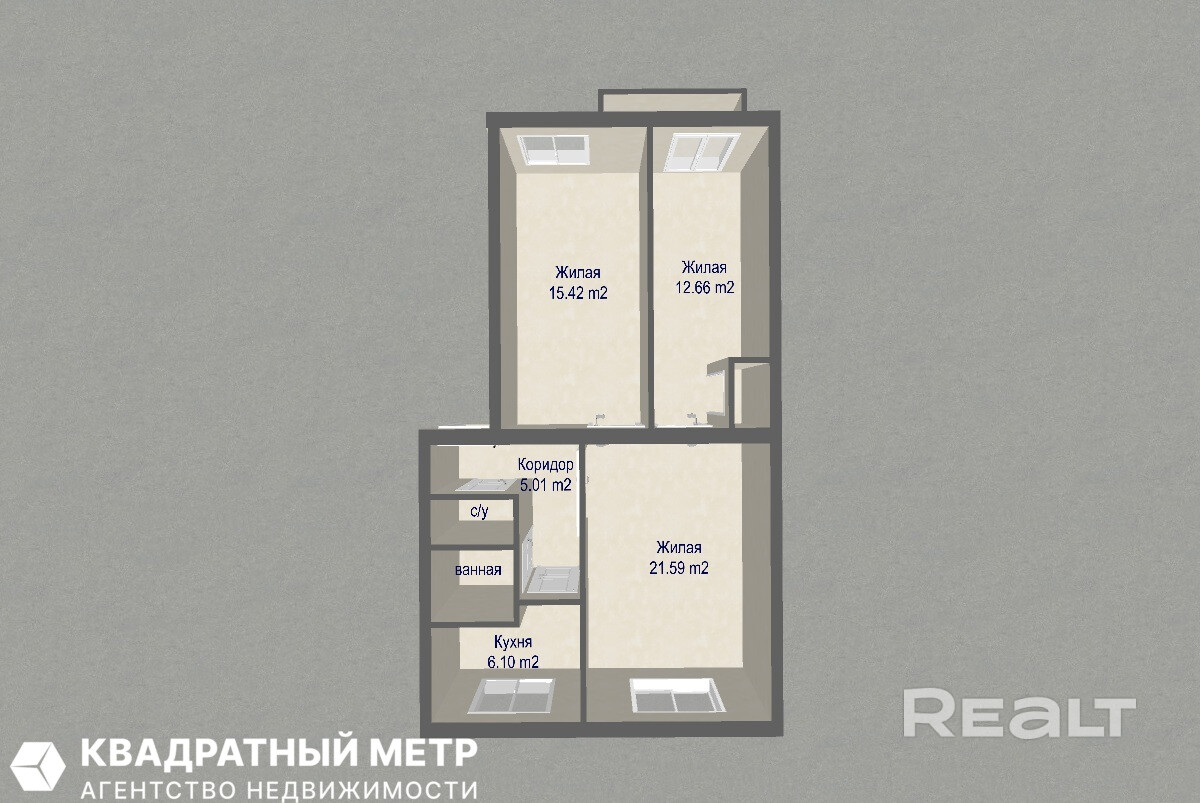 Свет и простор: Продуманная планировка с окнами на две стороны и качественными стеклопакетами.