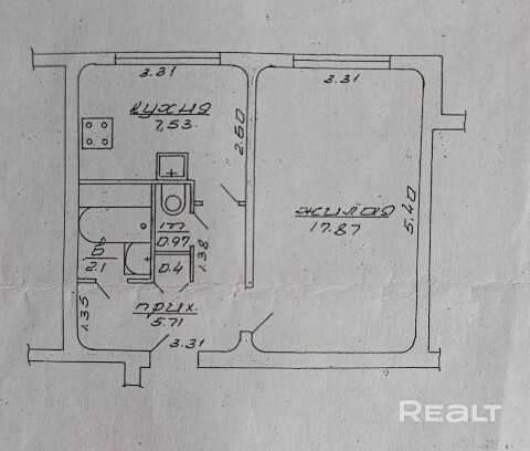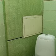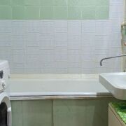 Раздельный санузел, в ванной легко поместилась стиральная машина и умывальник, уложена плитка, но давно и желательно со временем заменить. Можно заехать и сделать под себя.