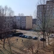 Вид на зеленый скверик за домом, не угловая и очень теплая квартира.
