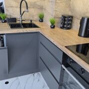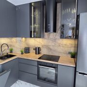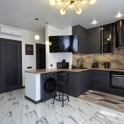 Отдельного внимания заслуживает кухонная зона – продуманная эргономика, индивидуальный проект, премиальная техника, качественная фурнитура., сделана естественная вентиляция!