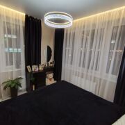 Собственник очень много вниманию уделил освещению – установлено много точек света в каждой комнате, в т.ч. дополнительно сделана качественная подсветка карнизов.