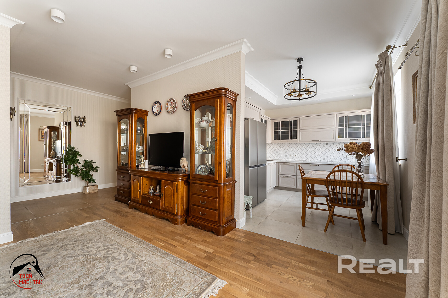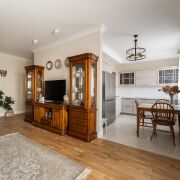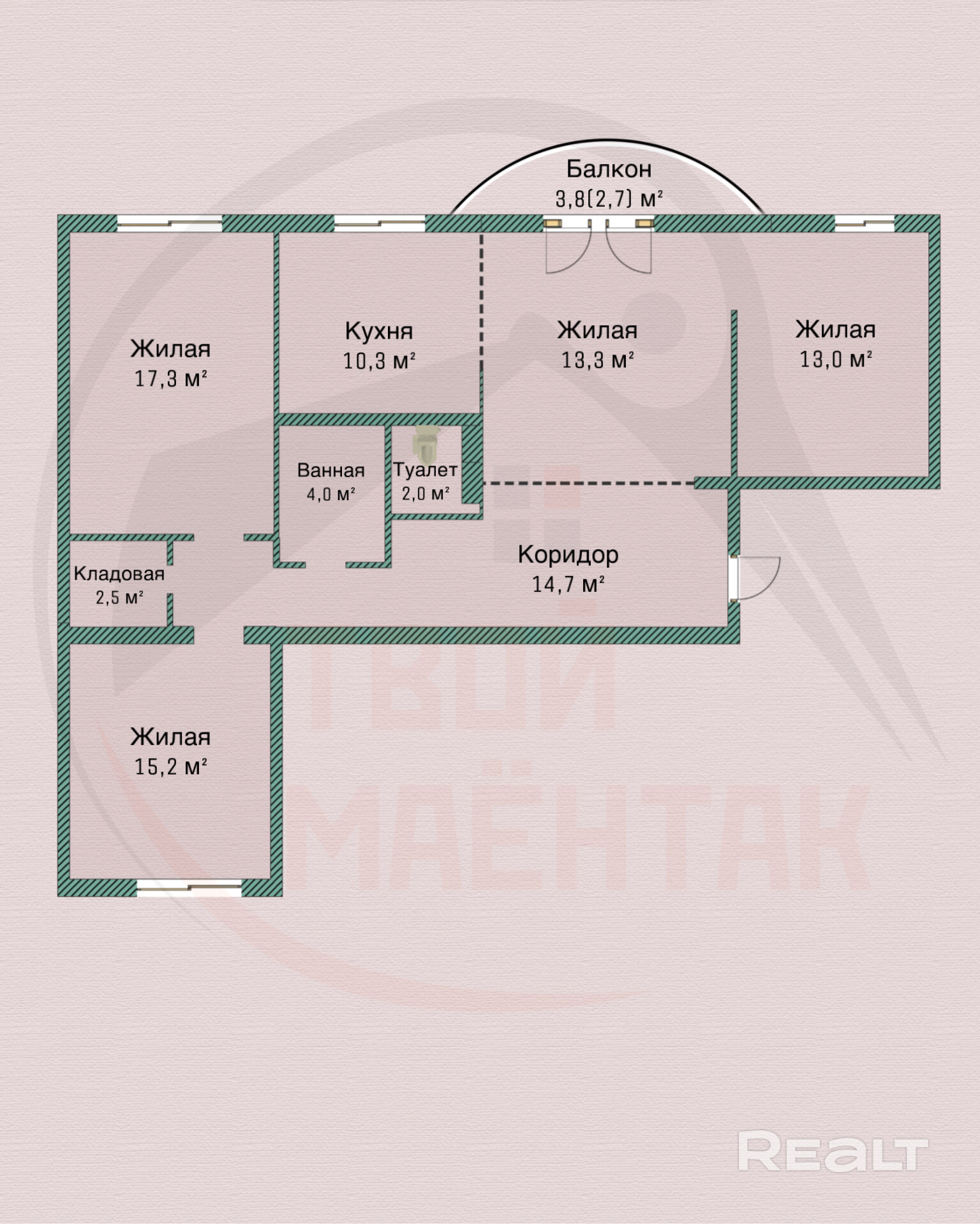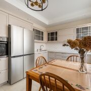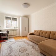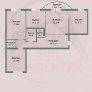Общая площадь квартиры составляет 95 кв. м, жилая площадь – 58.8 кв. м, площадь кухни – 10.3 кв. м. В квартире три изолированные комнаты площадью 17.7, 15.2 и 13 кв. м, а также кухня-гостиная площадью 23.6 кв. м. Дом выполнен из кирпича и газосиликатных блоков.