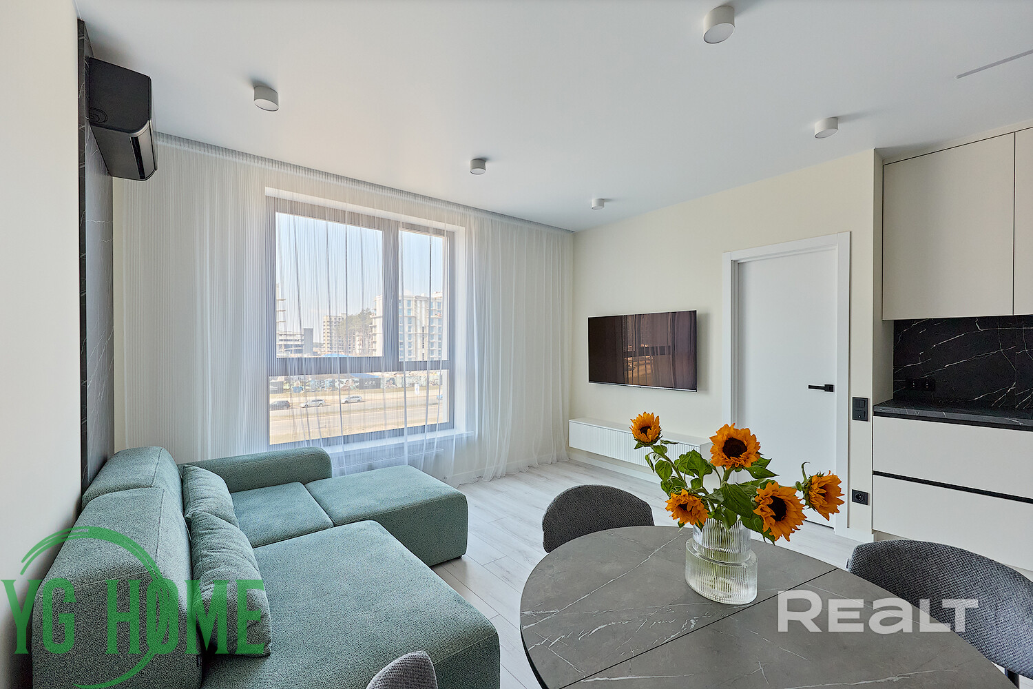 Кухня укомплектована встроенной мебелью и техникой. Установлен кондиционер.
