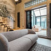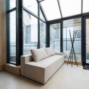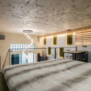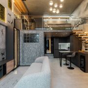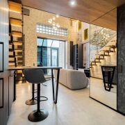 Потолки высотой 4 метра позволили создать второй уровень (спальня), что значительно увеличивает полезную площадь.