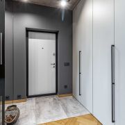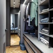 Встроенная мебель выполнена по индивидуальному проекту из МДФ в едином стиле.