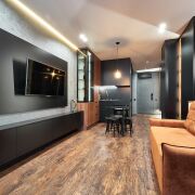 Эта квартира – идеальное воплощение философии "меньше значит больше", где каждая деталь работает на создание гармоничного и стильного пространства. Здесь каждый квадратный метр используется максимально эффективно, сохраняя атмосферу изысканного уюта и комфорта. Благородные оттенки наполняют квартиру эстетикой и безмятежным спокойствием.