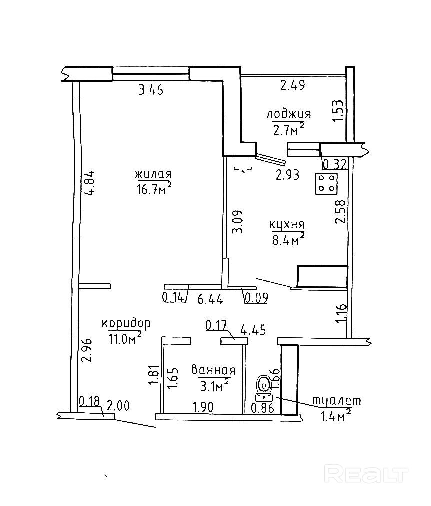 ·  Кухня - 8,4кв.м., из неё выход на лоджию