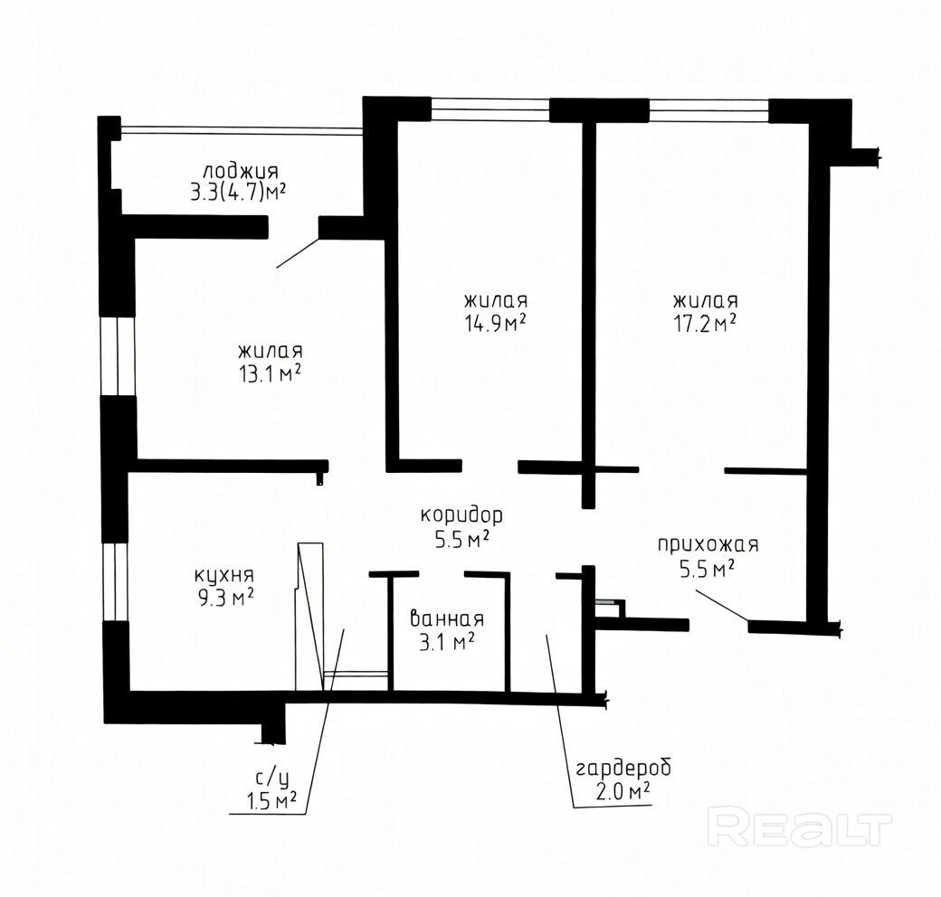 - Функциональная планировка, просторная кухня, 3 изолированные комнаты, раздельный санузел, лоджия и гардероб, окна выходят на две стороны дома (Северо-Запад), что дает отличную обзорность и много естественного света.