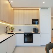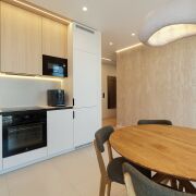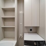 Квартира укомплектована встроенной мебелью выполненной по индивидуальному заказу и качественной бытовой техникой.