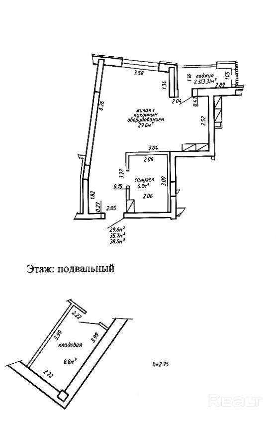 Высота потолков 2.75м.