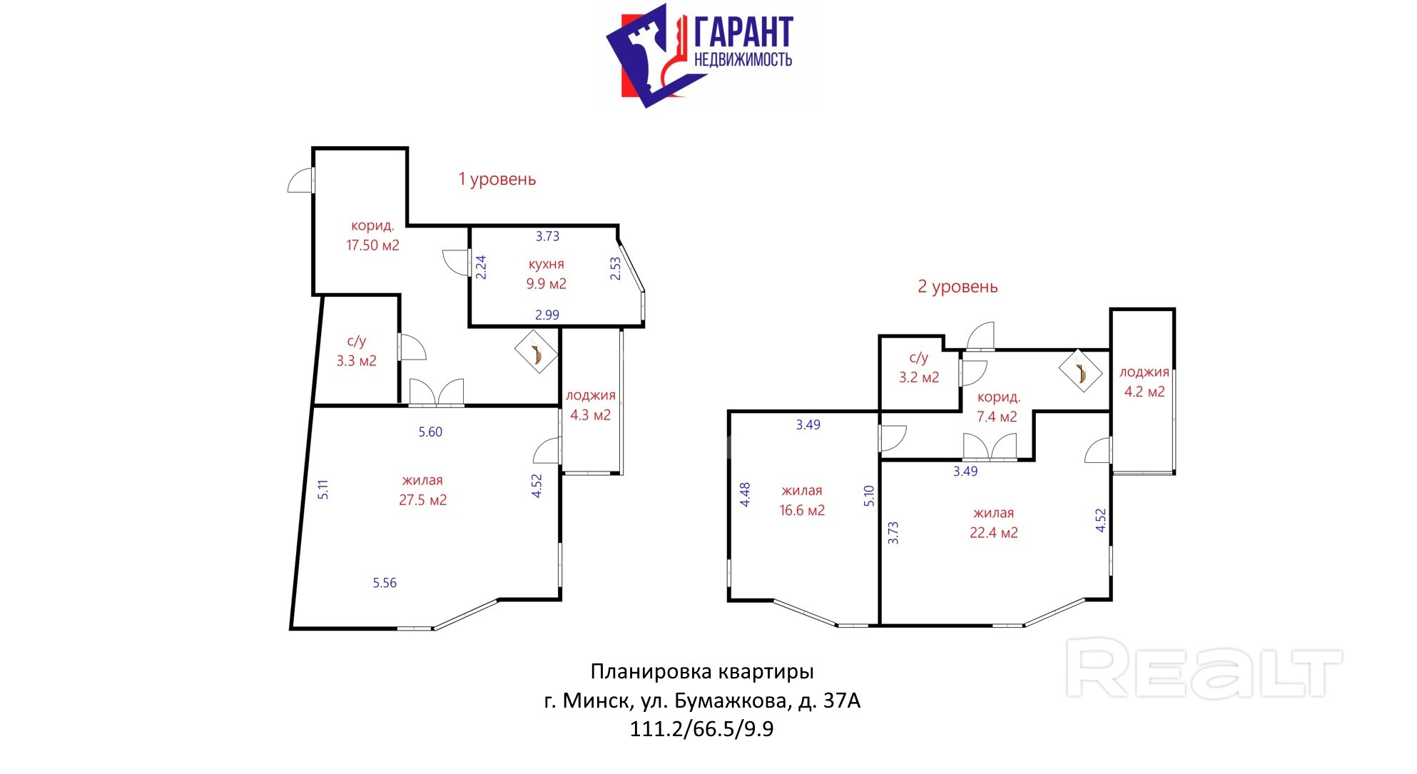 Продается 2-уровневая видовая квартира площадью по СНБ 117.1 м2 по адресу: ул. Бумажкова, 37А