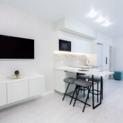 В квартире выполнен ремонт в современных тонах с использование качественных материалов.