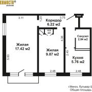 2-комнатная квартира на бульваре Шевченко, д.22 в городе Минске. Площадь по СНБ 43,8 кв.м., общая 43,0 кв.м., жилая 27,0 кв.м., кухня 5,8 кв.м., Квартира угловая, комнаты раздельные, санузел совмещенный, плитка, ламинат, балкон открытый, 5 этаж 5 этажного панельного дома 1962 года постройки, термошуба, капитальный ремонт 2012 г., высота потолков 2.53, приятный ремонт.