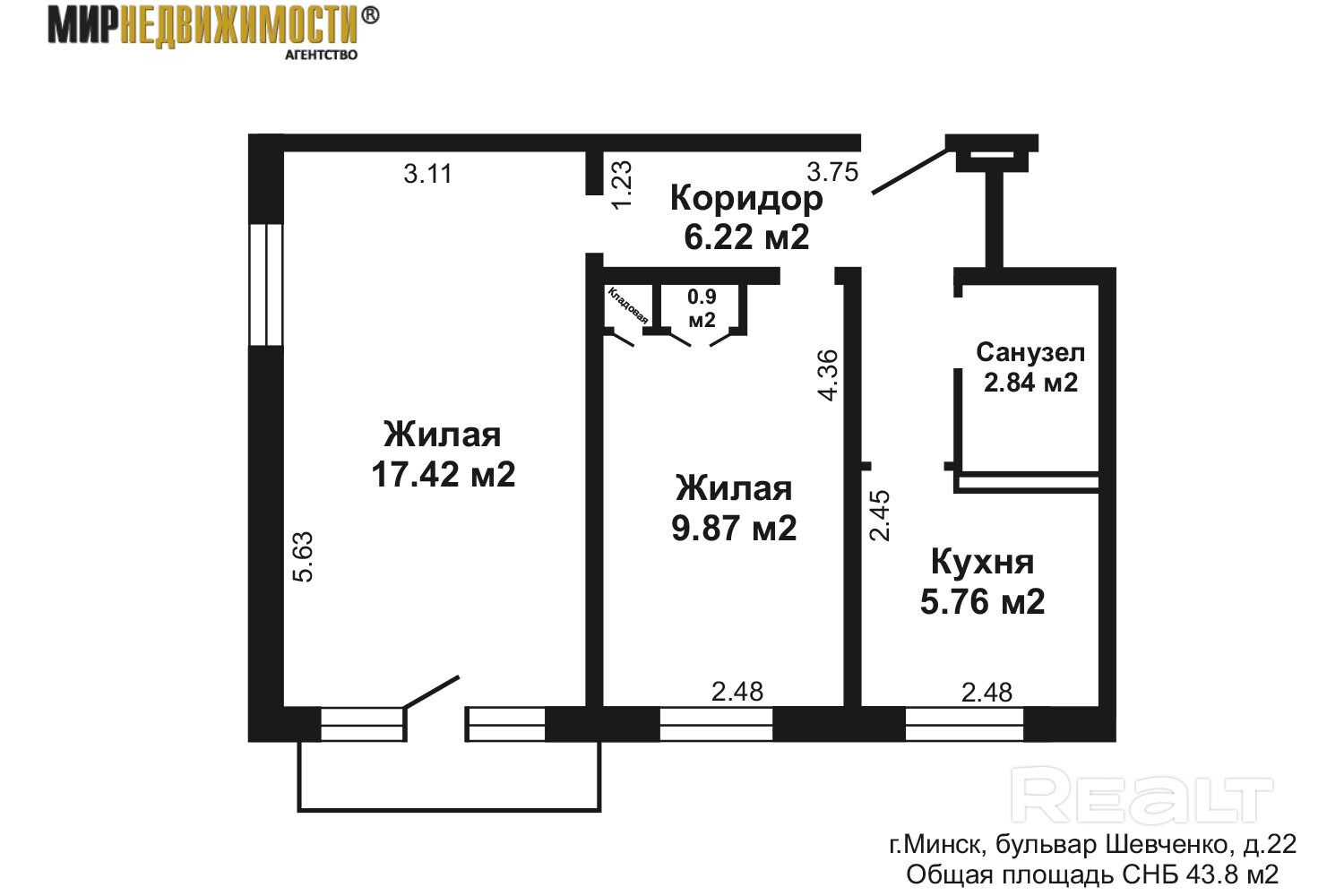 43.8 м²
