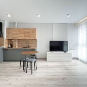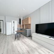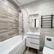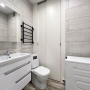 Квартира полностью готова для проживания и не требует дополнительных вложений. Установлена входная массивная металлическая дверь. Кухня выполнена по индивидуальному дизайнерскому проекту и оборудована всей необходимой бытовой техникой: холодильником, микроволновой печью, духовым шкафом, варочной панелью, вытяжкой. Современная ванная комната с установленным бойлером и стиральной машиной. Ремонт в светлых пастельных тонах и панорамное остекление придаёт квартире постоянное ощущение свежести и пространства.