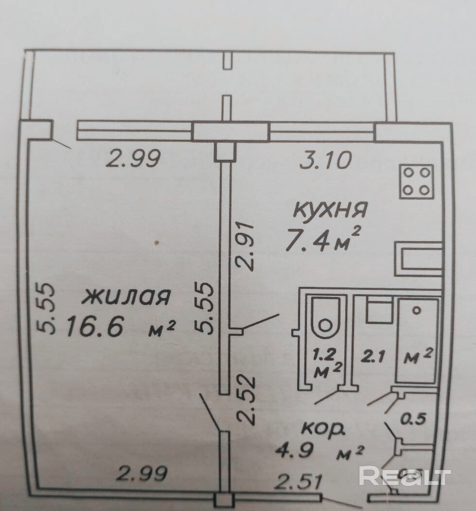 Купить 1-комнатную квартиру, г. Минск, просп. Пушкина, 38