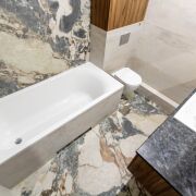 Ванны чешского производства и широкоформатный керамогранит — в деталях чувствуется подход «люкс».