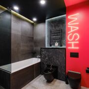 Второй санузел (3,1 м2) оборудован итальянской сантехникой, инсталляцией, гигиеническим душем и зеркалом во всю высоту.