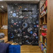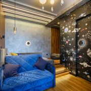 — детская спальня (12,7 м2) с рабочей зоной, мебелью и панелями из американского ореха, дизайнерским освещением и продуманными системами хранения;