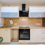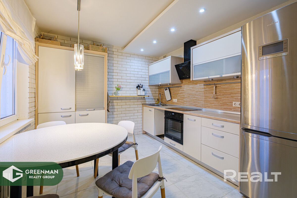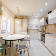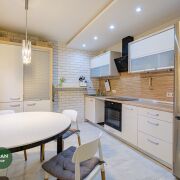 Кухня полностью соответствует уровню квартиры: светлая, просторная, с большой рабочей поверхностью, достаточным количеством мест хранения и полноценной обеденной зоной у окна. Здесь приятно не только готовить, но и проводить время с семьей. Установлена встроенная техника, в том числе духовой шкаф Electrolux и варочная панель, что позволяет заехать без дополнительных хлопот и лишних расходов.