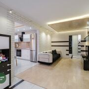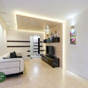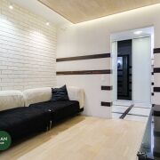 Здесь выполнен аккуратный современный ремонт в светлых тонах, благодаря чему квартира выглядит свежей, ухоженной и визуально еще более просторной. Просторная жилая комната 17,7 м2 оформлена стильно и со вкусом: декоративный кирпич, продуманное зонирование и освещение создают атмосферу уюта и делают это пространство идеальным для отдыха, встреч с близкими и семейных вечеров.