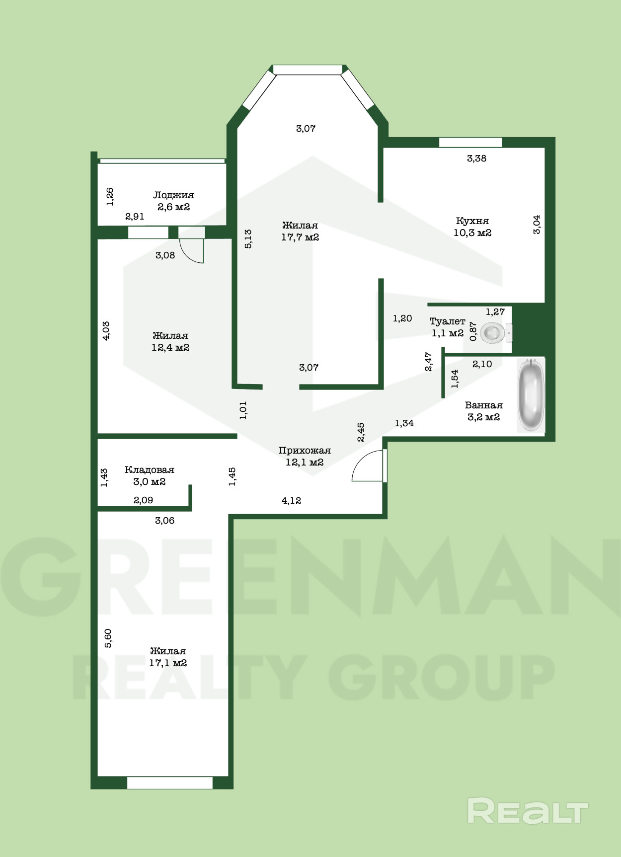 Это отличный вариант для семьи, которая хочет купить готовую квартиру с удачной планировкой, современным ремонтом и ощущением уюта уже с первых минут. В квартире три изолированные жилые комнаты, просторная кухня 10,3 м2, большая прихожая 12,1 м2, раздельный санузел, кладовая и лоджия. Планировка действительно продуманная: много света, много свободного пространства и все организовано так, чтобы жить было удобно каждый день.