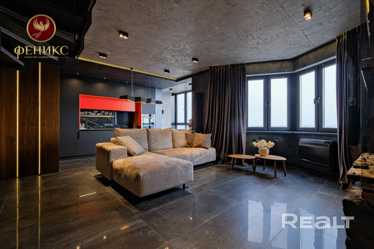 Эксклюзивная двухуровневая дизайнерская квартира в самом центре Минска с впечатляющими панорамными видами с 24–25 этажей.