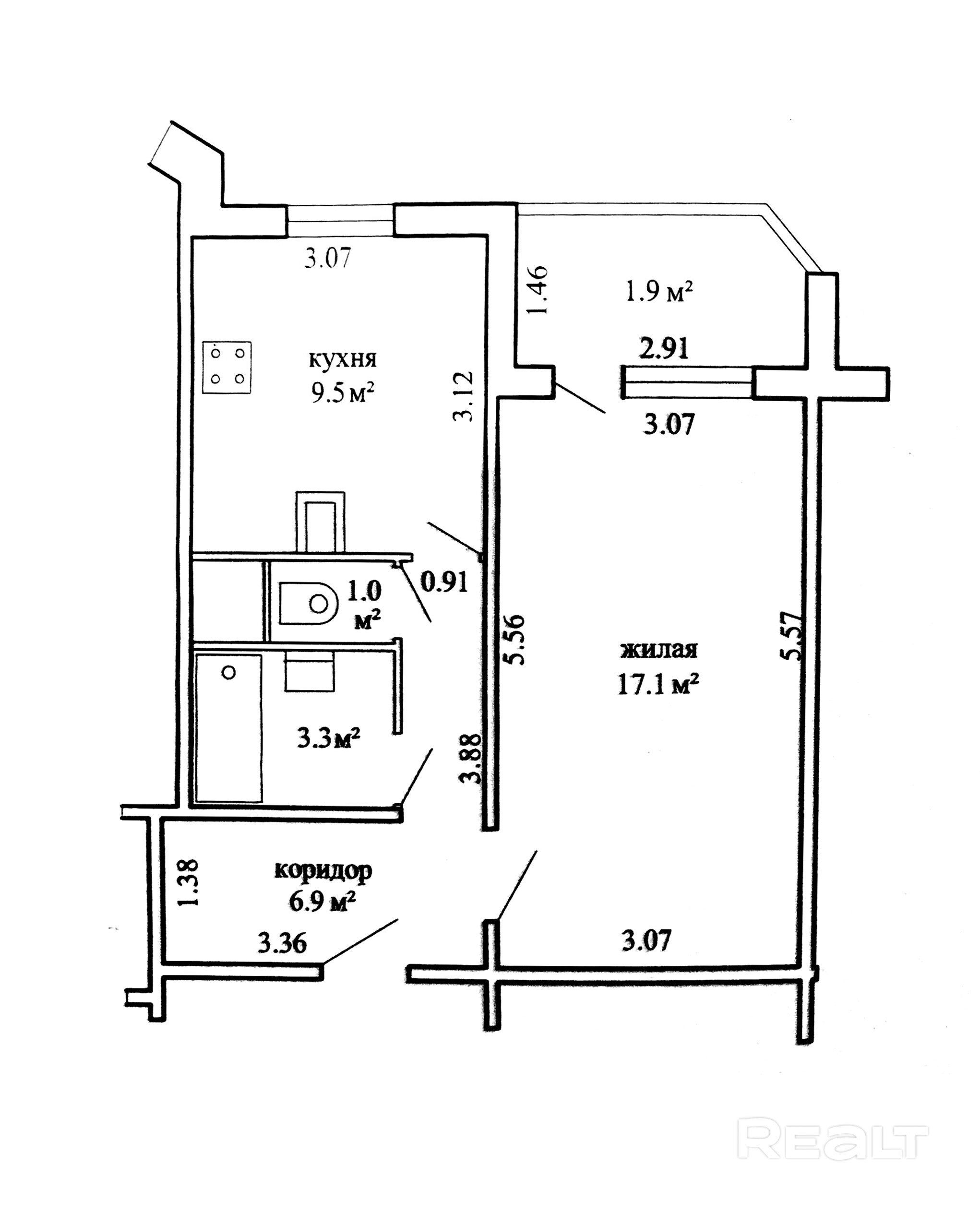 17.1 м²