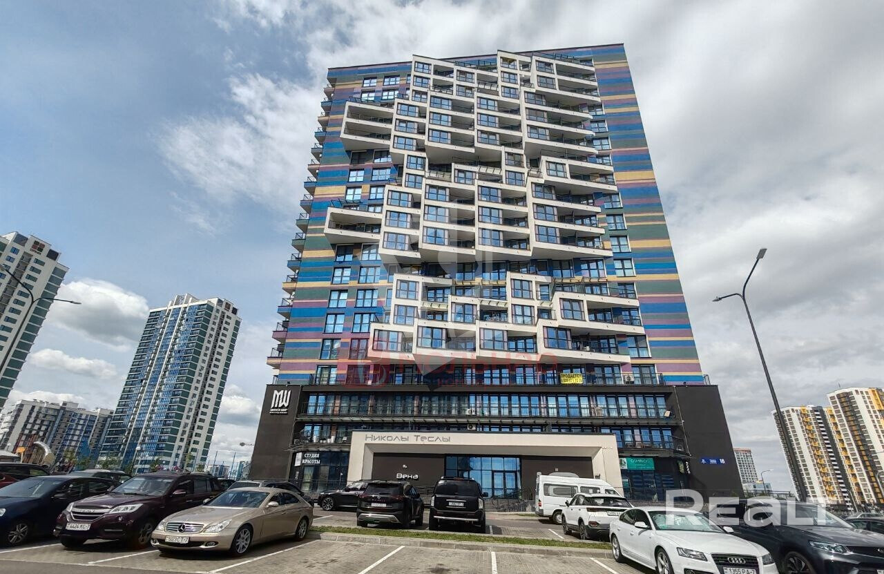 ЖК «Минск World», квартал «Центральная Европа» (ул. Николы Теслы, 20, комплекс «Белград»). Квартира с дизайнерским ремонтом — продаётся с мебелью и техникой. Есть терраса с видом, встроенная кухня, зоны отдыха и сна. Дом 2024 года: видеонаблюдение, бесшумные лифты. 1 минуты до м. «Аэродромная», 50 м до ТРЦ «Авия Молл». Рядом школа с бассейном, сад, магазины, кафе.