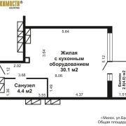 Общая площадь по СНБ 37.5 м2, жилая площадь 30.1 м2.