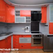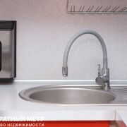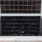 Кухня 8.8 м.кв, оборудована кухонным гарнитуром, оснащена всей необходимой техникой: электрическая варочная поверхность, духовой шкаф, вытяжка, посудомоечная машина, раковина со смесителем.